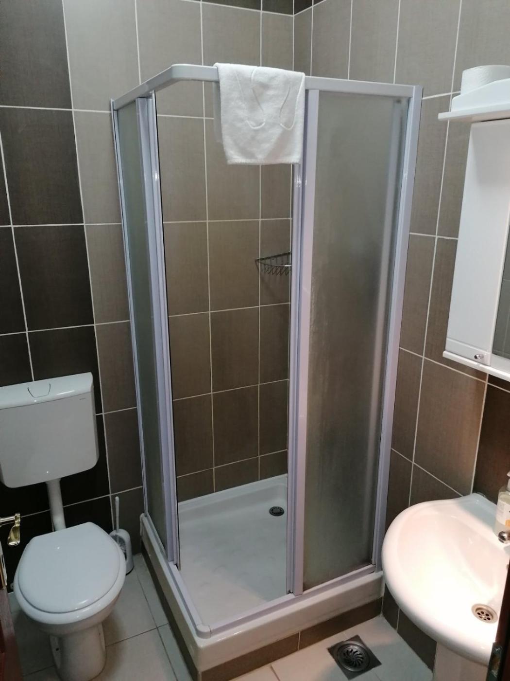 Comfort Triple Room with Shower. The triple room provides a tiled floor, a carpeted floor, as well as a private bathroom boasting a shower and a hairdryer. The air-conditioned triple room features a flat-screen TV with cable channels, a private entrance, a seating area, a wardrobe as well as garden views. The unit has 3 beds. ;
