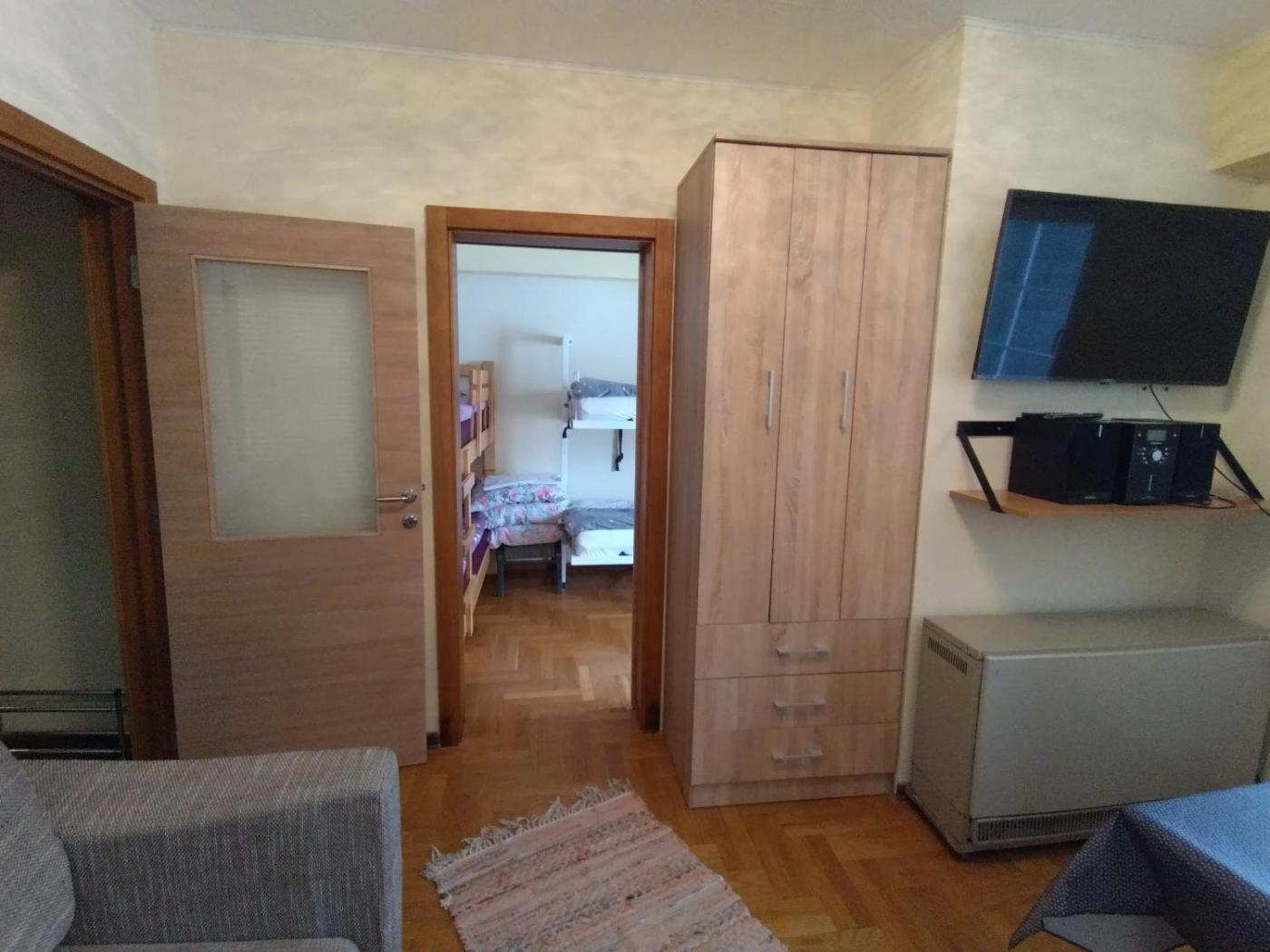 One-Bedroom Apartment. Featuring a private entrance, this apartment consists of 1 living room, 1 separate bedroom and 1 bathroom with a shower and a hairdryer. Guests can make meals in the kitchen that is equipped with a stovetop, a refrigerator, kitchenware and a tea and coffee maker. Boasting a terrace with mountain views, this apartment also provides a washing machine and a TV. The unit offers 5 beds.