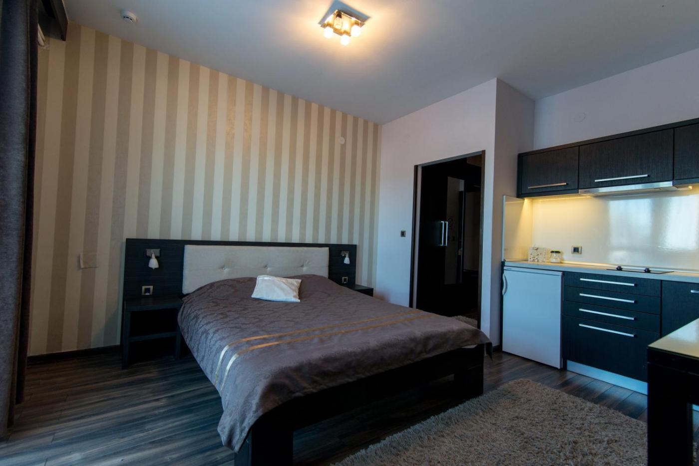 One-Bedroom Apartment. The sauna and fireplace are the special features of this apartment. This apartment comes with 1 living room, 1 separate bedroom and 1 bathroom with a shower and bathrobes. A kitchen fitted with a stovetop, a refrigerator and kitchenware is available for cooking and storing food. This apartment has a wardrobe, a carpeted floor, a flat-screen TV with cable channels and a patio. The unit has 3 beds. ;