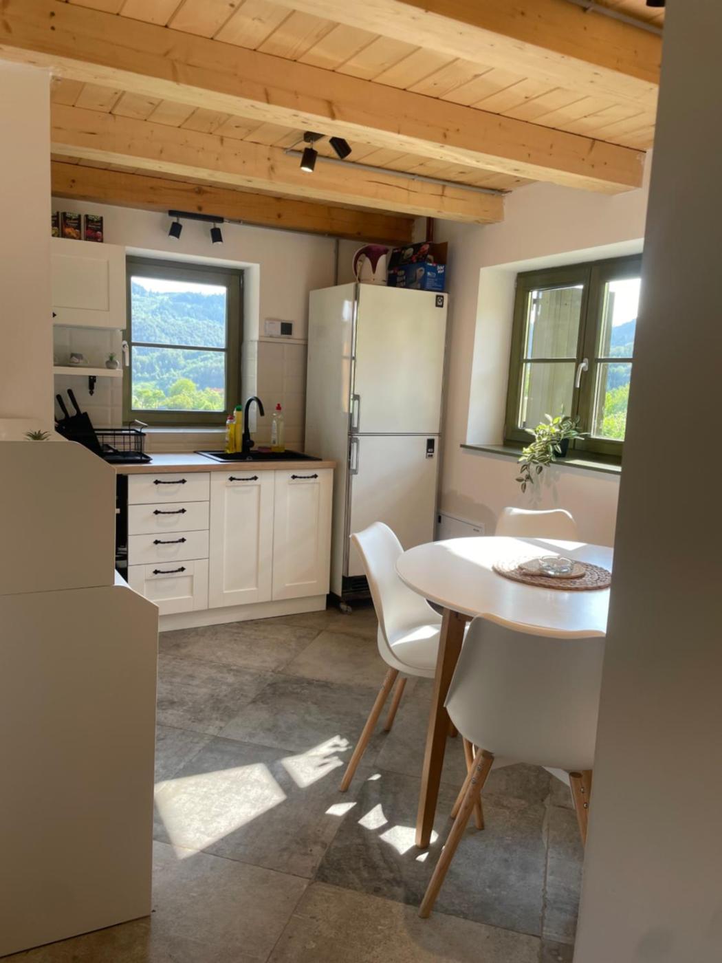 The holiday home has 2 bedrooms, 2 bathrooms, bed linen, towels, a flat-screen TV with satellite channels, a dining area, a fully equipped kitchen, and a terrace with mountain views. Guests can take in the ambience of the surroundings from an outdoor dining area or keep themselves warm by the fireplace on colder days. For added privacy, the accommodation features a private entrance.