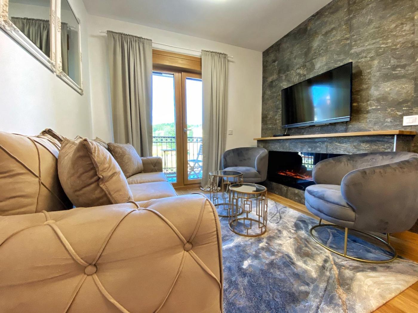 Two-Bedroom Apartment. This apartments standout feature is the fireplace. In the kitchen, guests will find a stovetop, a refrigerator, kitchenware and an oven. Featuring a terrace, this apartment also offers a seating area, a dining area and a flat-screen TV with cable channels. The unit offers 2 beds.